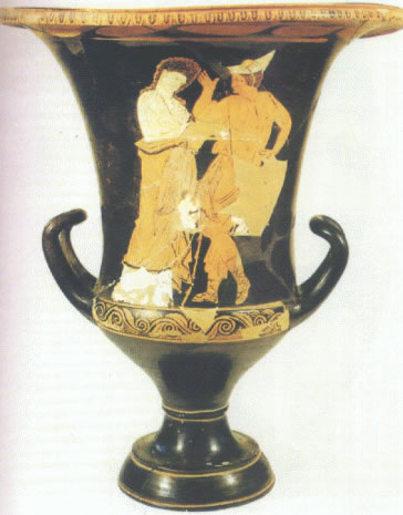 Vase à orifice large, à deux anses, utilisé pour le mélange de l'eau et du vin.