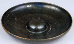 Plat assez profond pourvue d'un ombilic à l'intérieur relevé vers l'intérieur et creusé du côté extérieur pour en faciliter la prise, servant lors des libations.